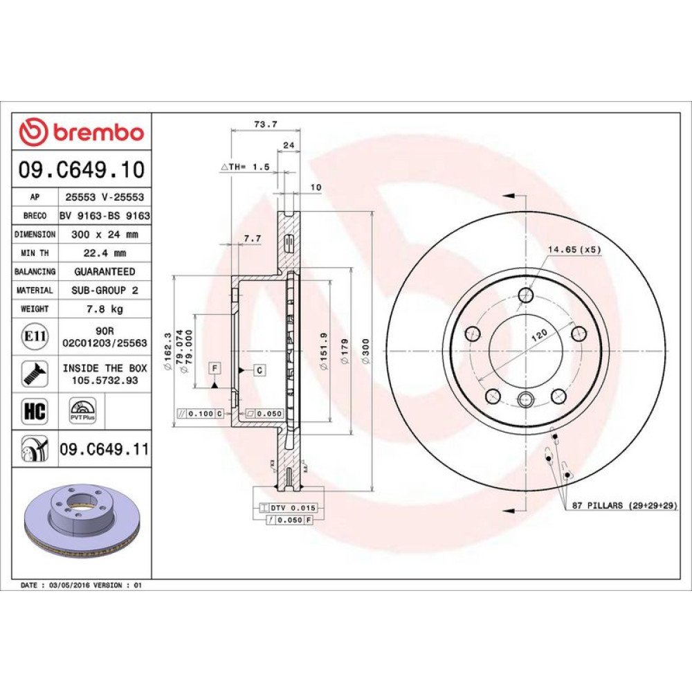 09.C649.11 Bremsscheibe PRIME LINE - UV Coated
