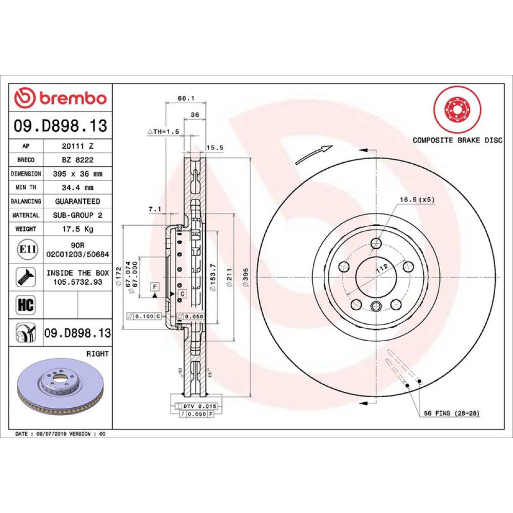 | paarige Artikelnummer | 09.D897.13 Bremsscheibe PRIME LINE - Composite |