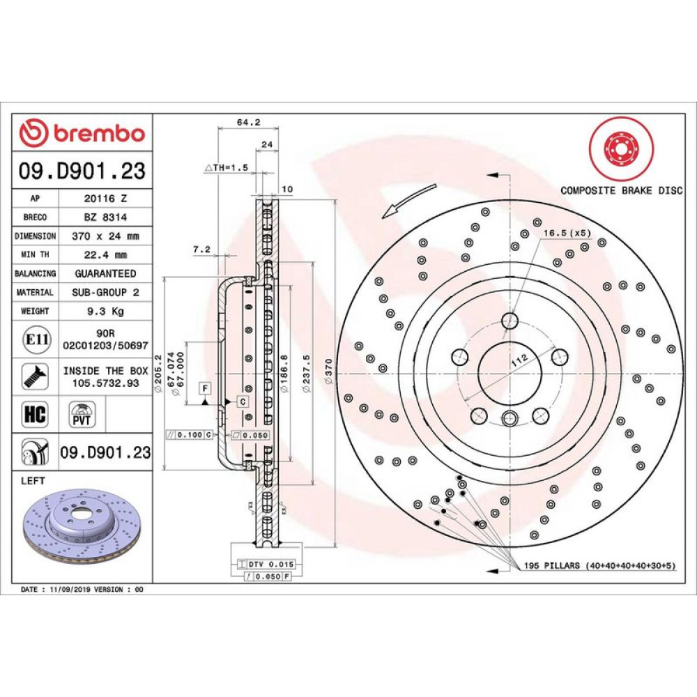 | paarige Artikelnummer | 09.D901.33 Bremsscheibe PRIME LINE - Composite |