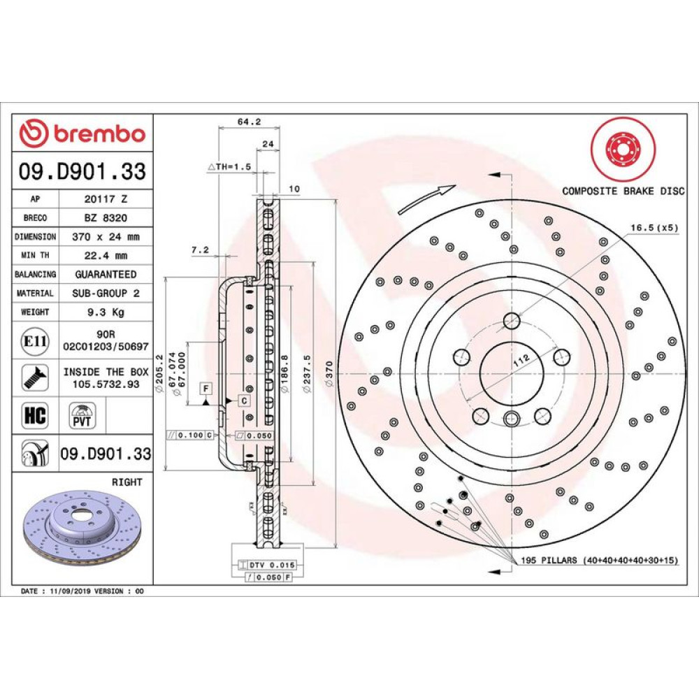 | paarige Artikelnummer | 09.D901.23 Bremsscheibe PRIME LINE - Composite |