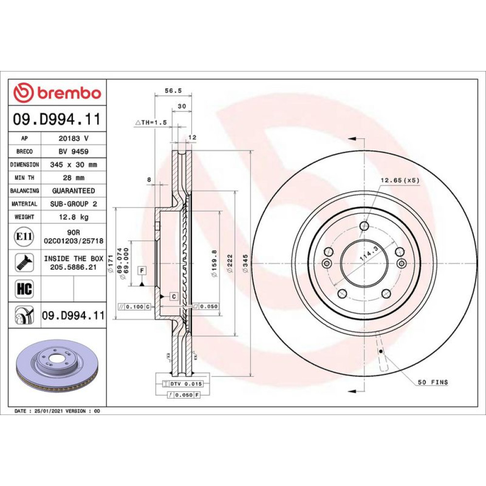 09.D994.11 Bremsscheibe PRIME LINE - UV Coated