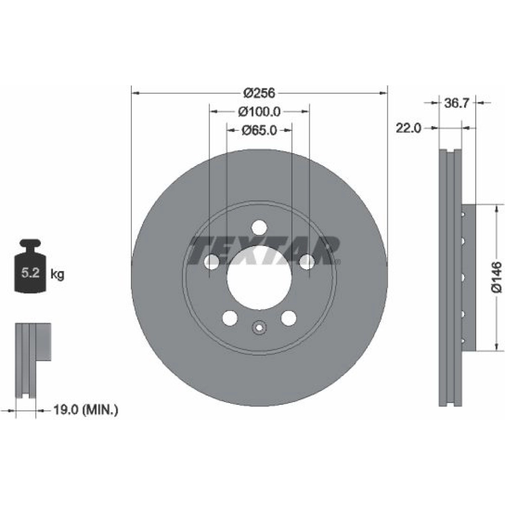 TEXTAR PRO+ 92082205 Bremsscheibe 256x22mm, 05/06x100, außenbelüftet, beschichtet, hochgekohlt