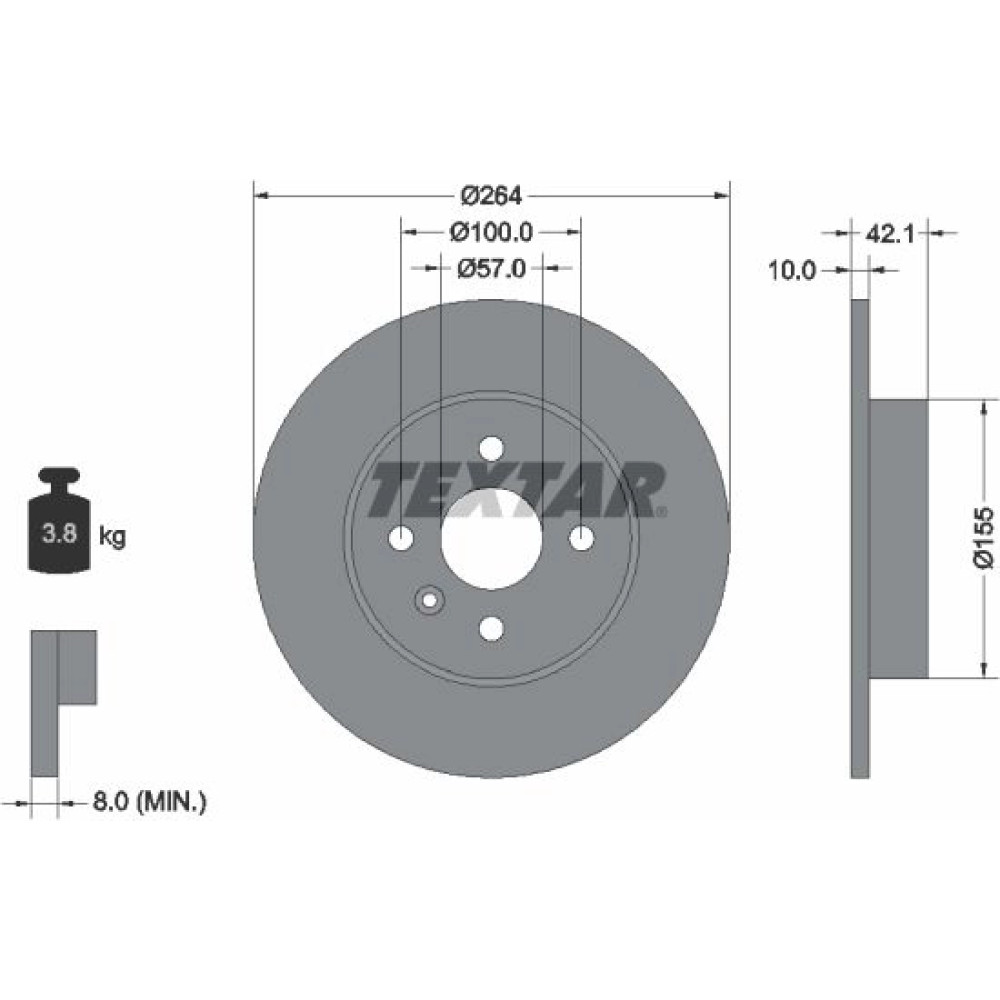 TEXTAR PRO 92124703 Bremsscheibe Ø264mm, 04/05x100, voll, beschichtet