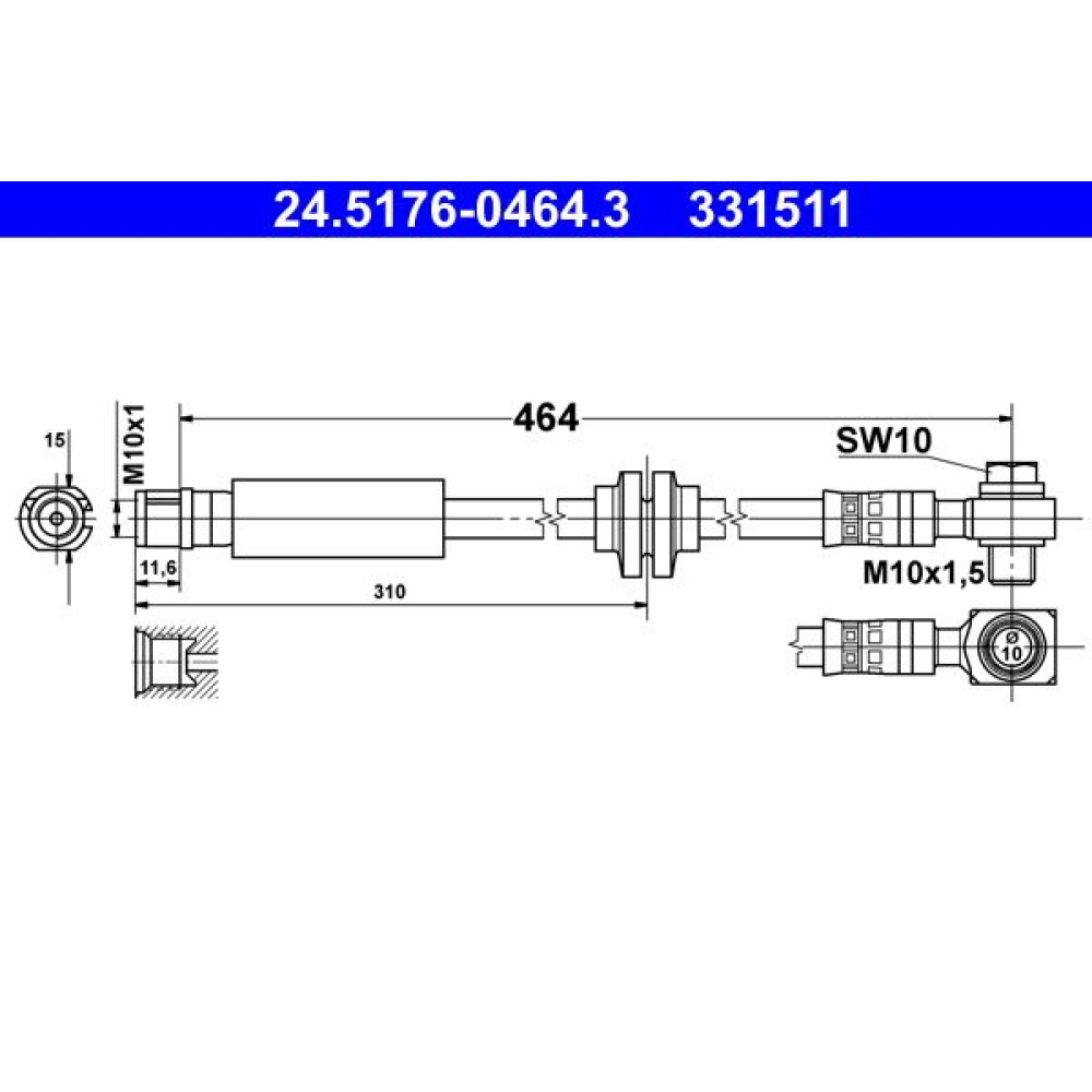 2 x ATE Bremsschlauch | 24.5176-0464.3