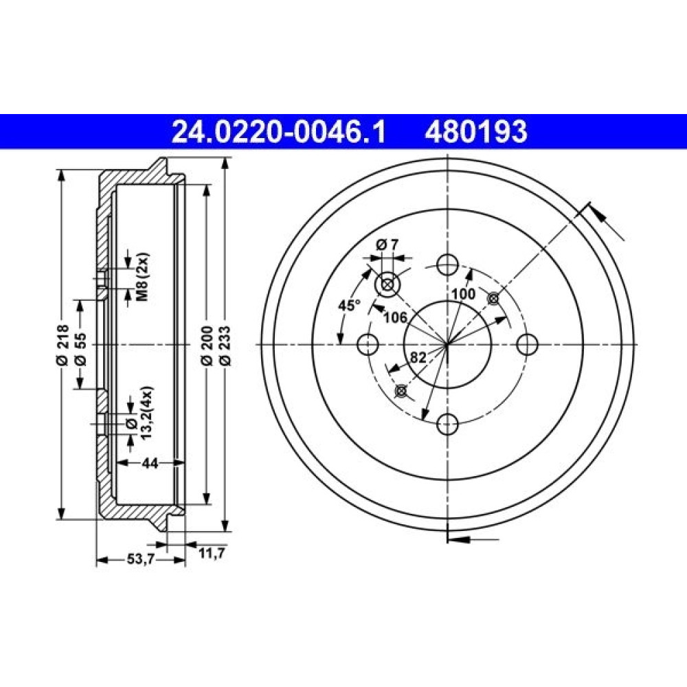 | Bremstrommeldurchmesser außen [mm] | 233,0 |