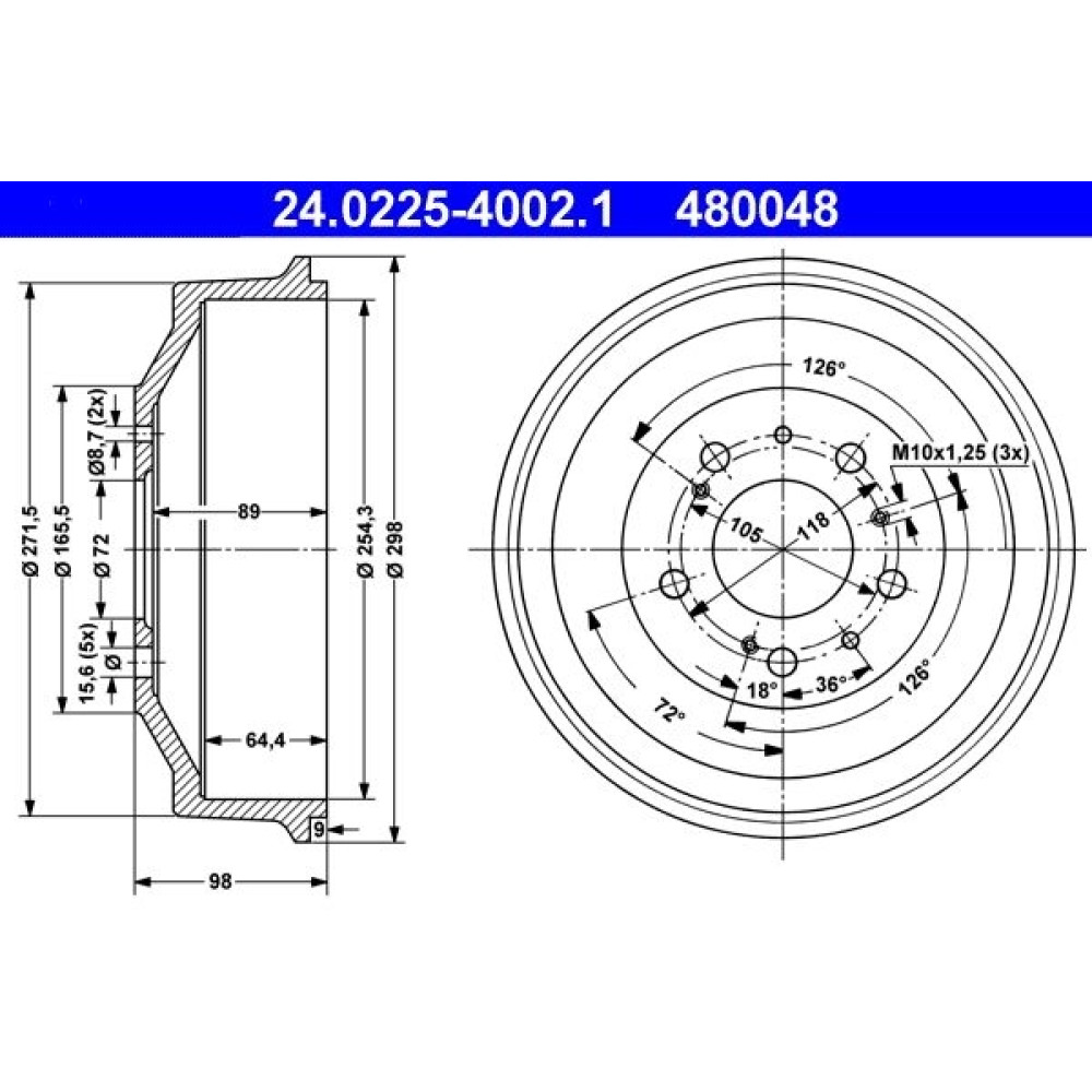 | Bremstrommeldurchmesser außen [mm] | 298,0 |