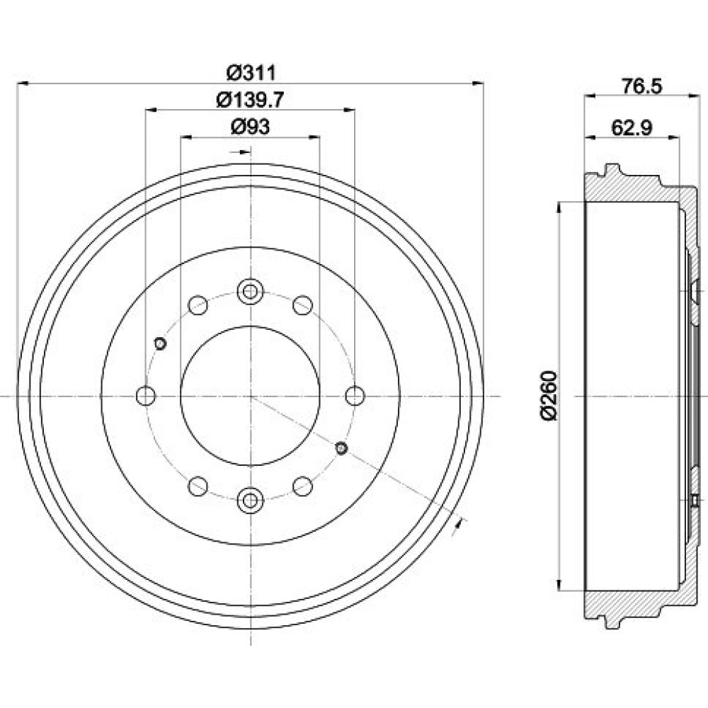 | Bremstrommeldurchmesser außen [mm] | 311 |