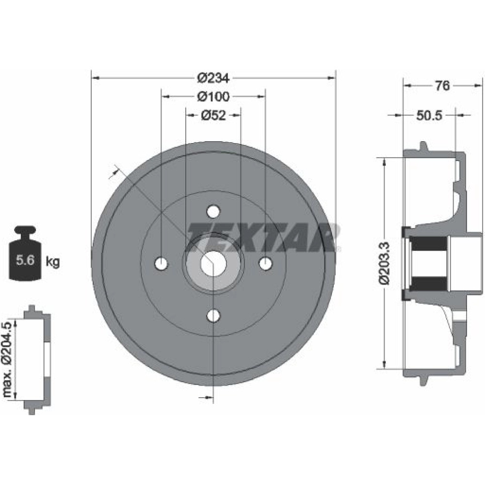 | Bremstrommelhöhe gesamt [mm] | 76 |