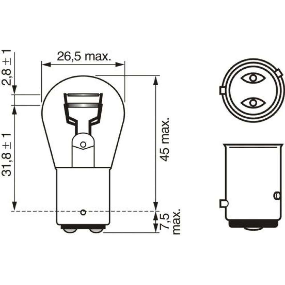 | Sockelausführung Glühlampe | BAZ15d |