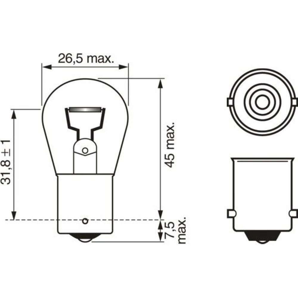 | Sockelausführung Glühlampe | BA15s |