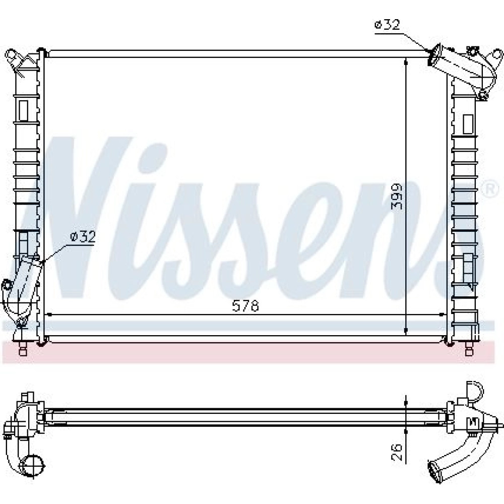 NISSENS 69701A Kühler, Motorkühlung für MINI Schrägheck, Cabrio Aluminium, 578 x 399 x 26mm