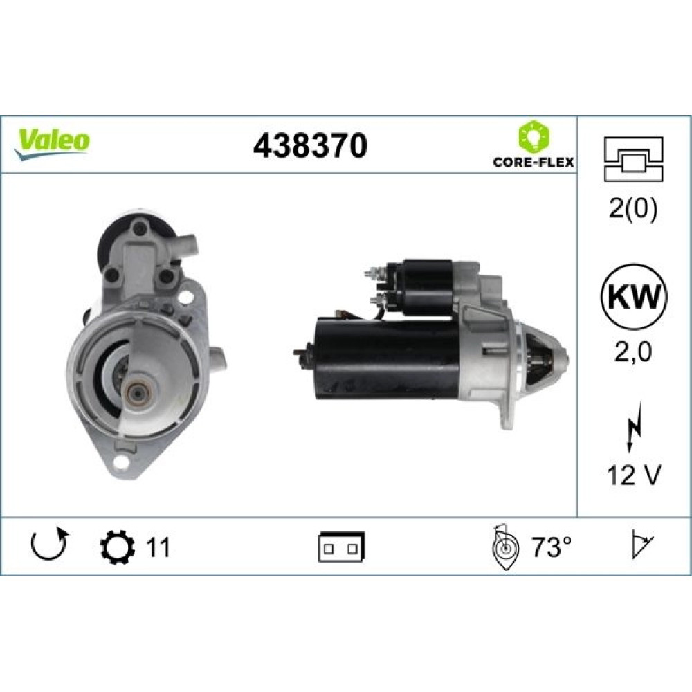 VALEO 438370 Anlasser 12V, 2kW, Zähnez.: 11, R 73, Ø 76 mm