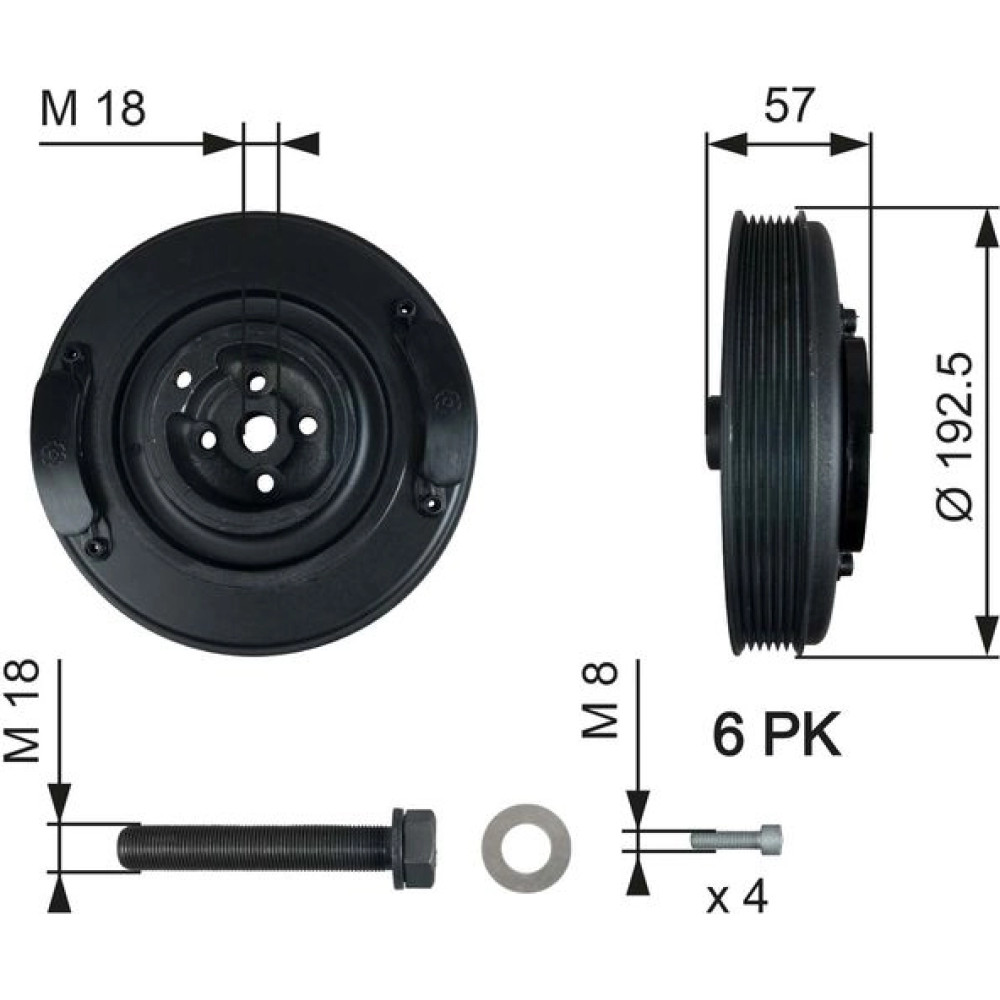 Inhalt des Gates Riemenscheibe, Kurbelwelle TVD1033A