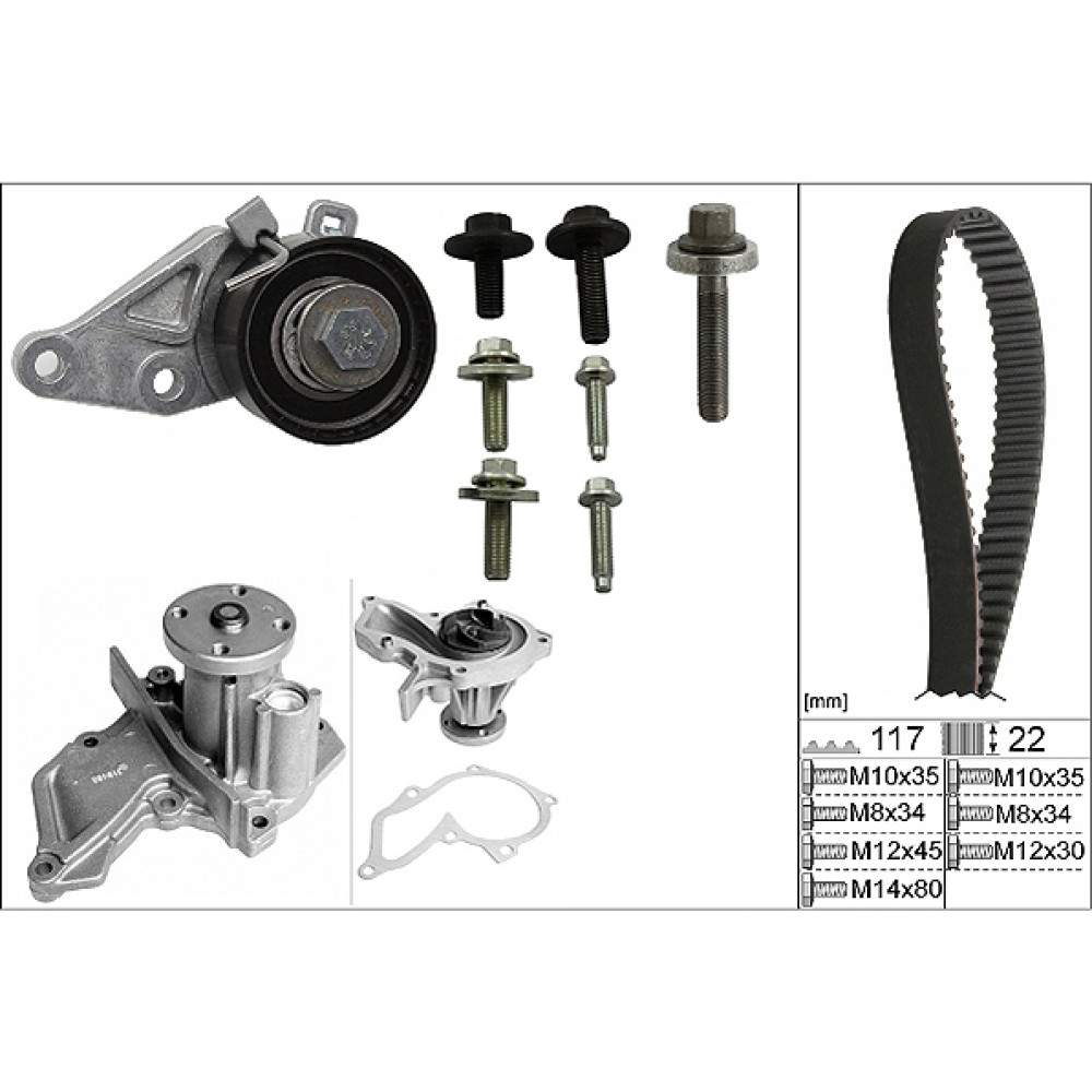 Inhalt des INA Wasserpumpe + Zahnriemensatz 530 0140 30