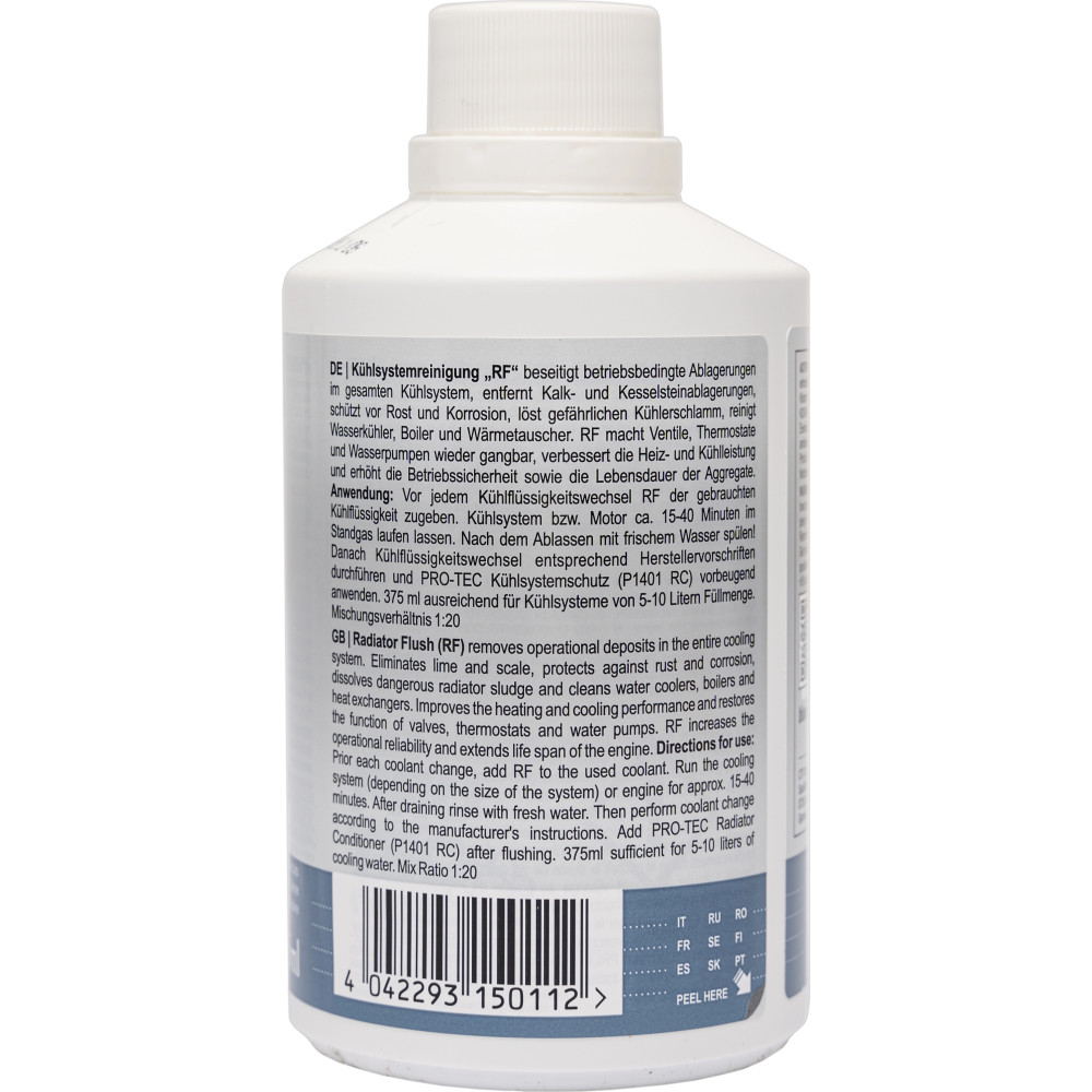 PRO-TEC Radiator Flush beseitigt betriebsbedingte Ablagerungen im gesamten Kühlsystem, entfernt Kalk- und Kesselsteinablagerungen, schützt vor Rost und Korrosion, löst gefährlichen Kühlerschlamm, reinigt Wasserkühler, Boiler und Wärmetauscher. PRO-TEC Radiator Flush macht Ventile, Thermostate und Wasserpumpen wieder gangbar. Durch den Einsatz von Radiator Flush erhöhen sich die Betriebssicherheit sowie die Lebensdauer der Aggregate. Des Weiteren verbessert sich die Heiz- und Kühlleistung.
