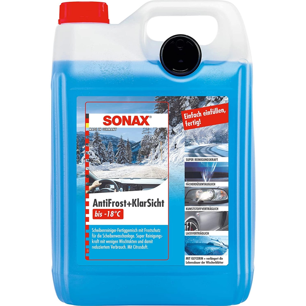 Gebrauchsfertiger Scheibenwaschanlagen-Frostschutz mit frischem Citrusduft. Geeignet für bis zu -18° C. Beseitigt die typischen Winterverschmutzungen und sorgt für klare Sicht. Verhindert das Einfrieren der Scheibenwaschanlage und Düsenvereisung. Fächerdüsentauglich. Lack-, gummi- und kunststoffverträglich. Verursacht keine Spannungsrisse und Blindstellen an Scheinwerferstreuscheiben. Bestens geeignet für hochwertige LED- sowie XENON-Scheinwerfer und Kunststoffstreuscheiben in Klarglasoptik. Mit Glycerin. Hält Gummi geschmeidig. Kein Rubbeln der Wischerblätter.