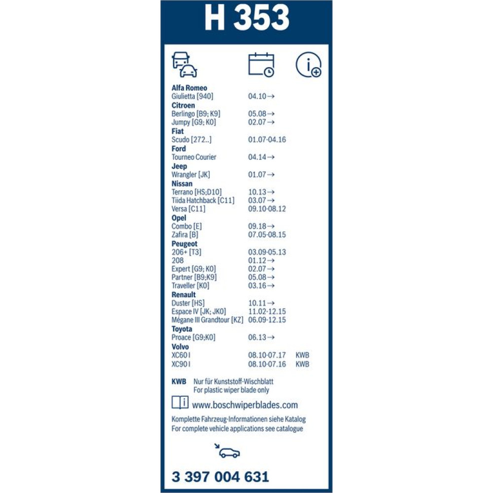 BOSCH H 353 Scheibenwischer Rear 3 397 004 631
